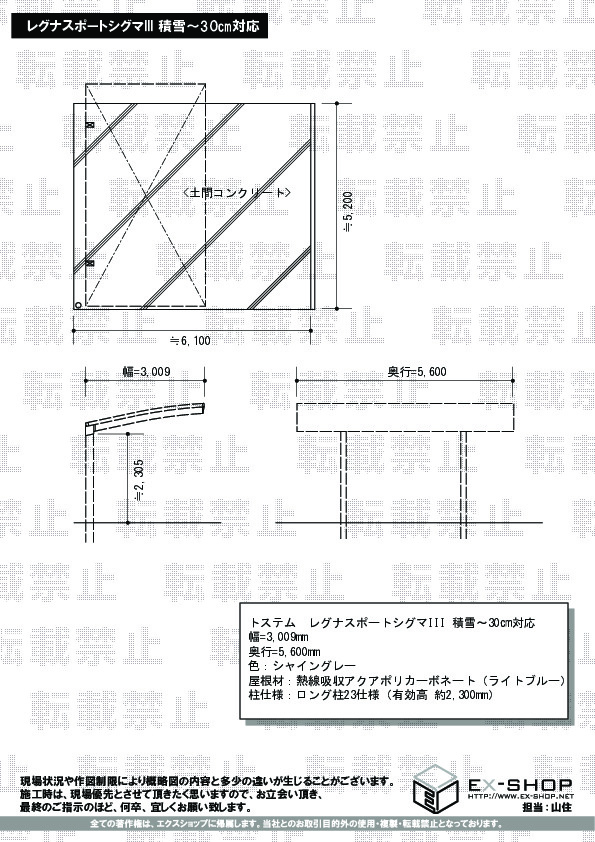 この度は、レグナスポートシグマIIIの施工ご依頼を頂き誠に有り難うございます。弊社はネット販売の利点を活かし、お求めやすい価格で、ご要望に沿った施工を目指しております。このようなお言葉を頂き、大変光栄に存じます。すっと流れるお屋根で、片側支柱のすっきりとしたお仕上がりでございますね。今後も、お客様にご満足頂ける様、日々精進して参りますのでまた機会がございましたら是非エクスショップをご利用下さいます様、宜しくお願い致します。