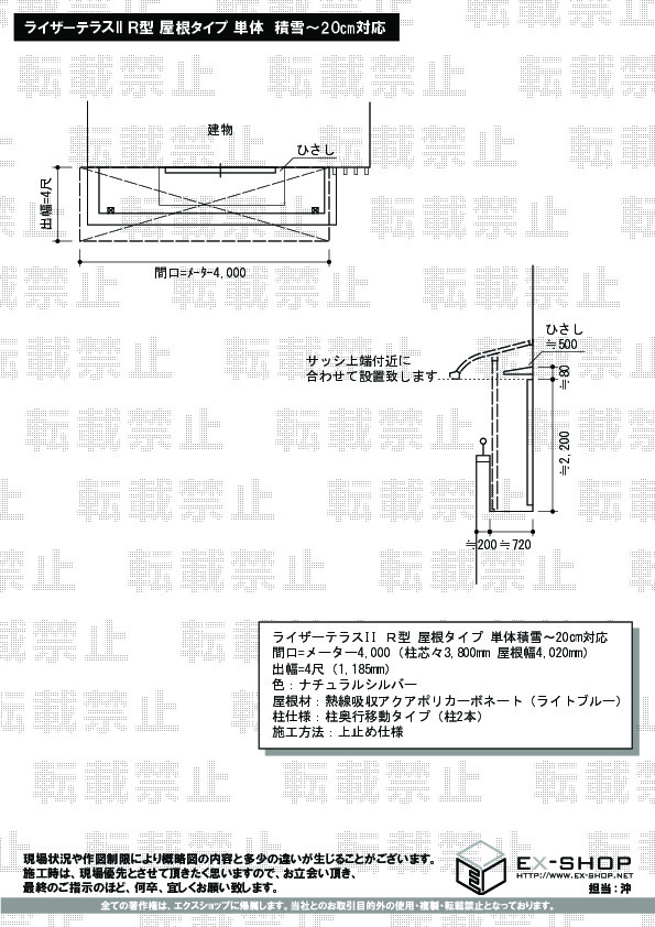 サイズ | 屋根幅 4,020mm 出幅 1,185mm |