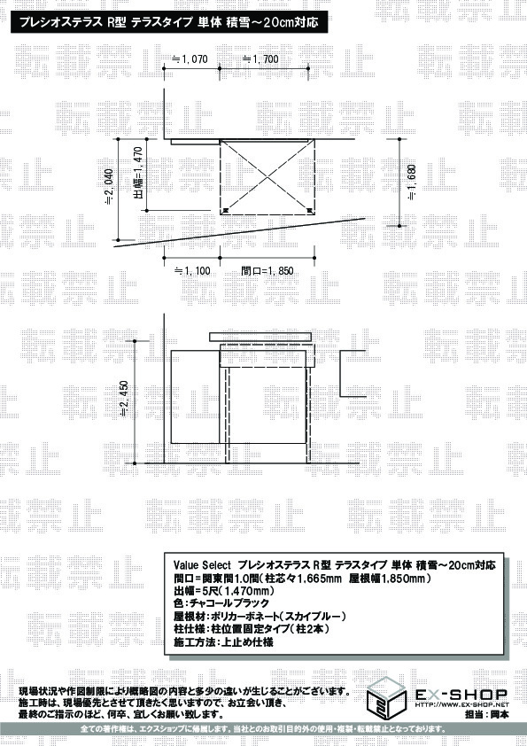 | サイズ | 屋根幅 1,850mm 出幅 1,470mm |