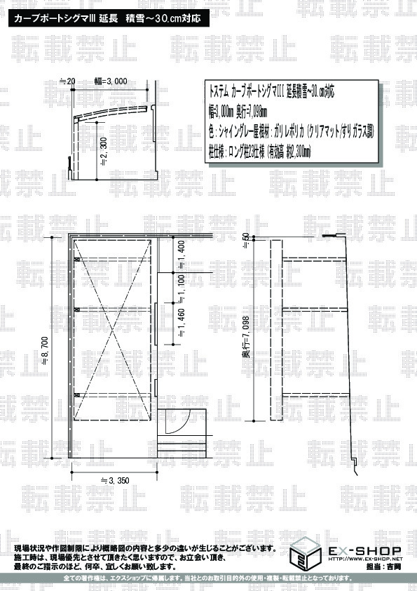 | サイズ | 幅 3,000mm 奥行 7,098mm |