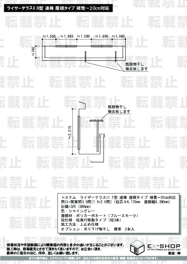 ライザーテラスII R型の施工をご依頼頂きまして、誠に有難うございます。綺麗にカーブしたお屋根が、雨風の吹き込みや日差しの差し込みを防ぎ、快適にご利用頂けるものと存じます。今後は、丁寧な対応とともに、スピードの面でもご満足頂けますよう、努力して参りたいと存じます。また機会がございましたら、是非エクスショップにご用命くださいますよう、宜しくお願い致します。