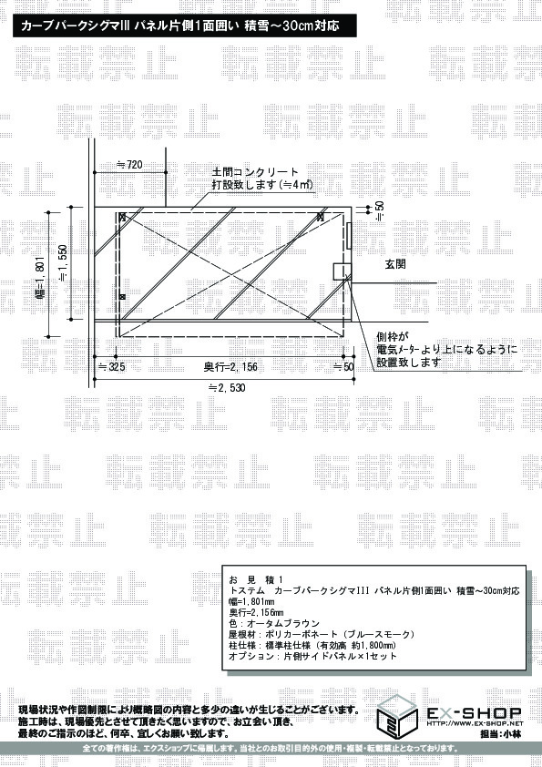 タカショーのサイクルポート「アートポートミニ」(21-21、標準柱熱線カット屋根)の設置を考えているのですが、見積もりをお願いできますか?