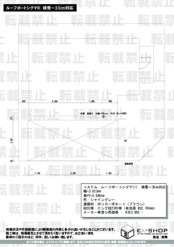 | 屋根高等 | ロング柱23仕様(有効高 約2,700mm) |