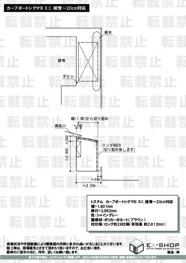 | 屋根高等 | ロング柱28仕様(有効高 約2,812mm) |