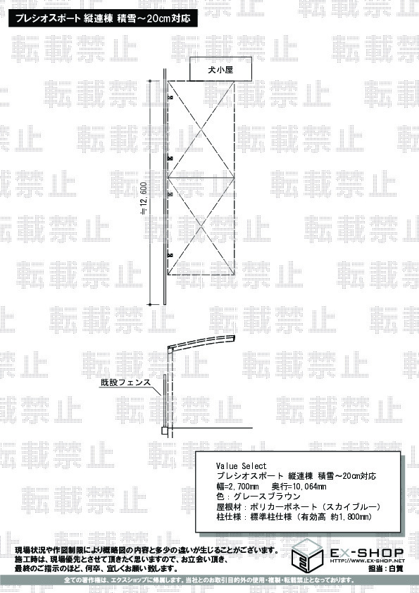 | 屋根材等 | ポリカーボネート(スカイブルー) |