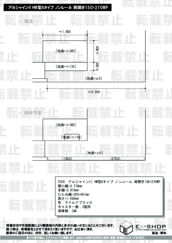 カラー:ブロンズ 規格幅:4180 (mm) 規格高:1150 (mm)