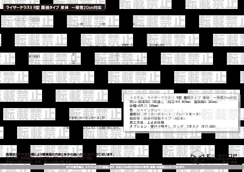 | サイズ | 屋根幅 5,360mm 出幅 1,185mm |