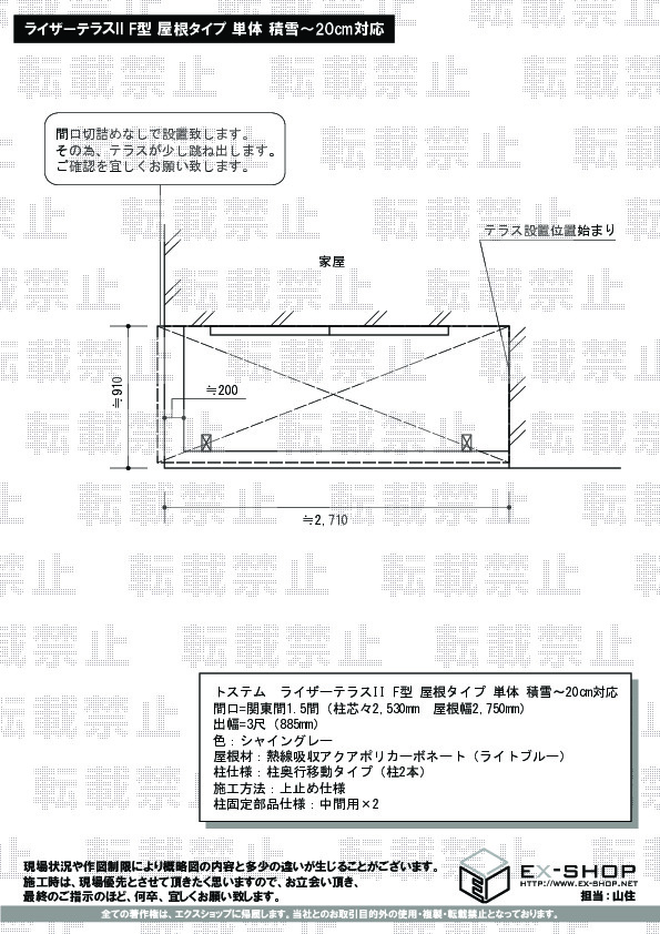| サイズ | 屋根幅 2,750mm 出幅 885mm |