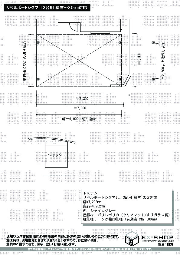 | 屋根高等 | ロング柱28仕様(有効高 約2,800mm) |