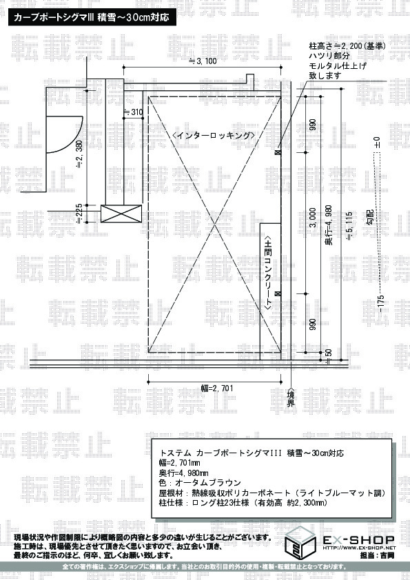 | 屋根高等 | ロング柱23仕様(有効高 約2,300mm) |