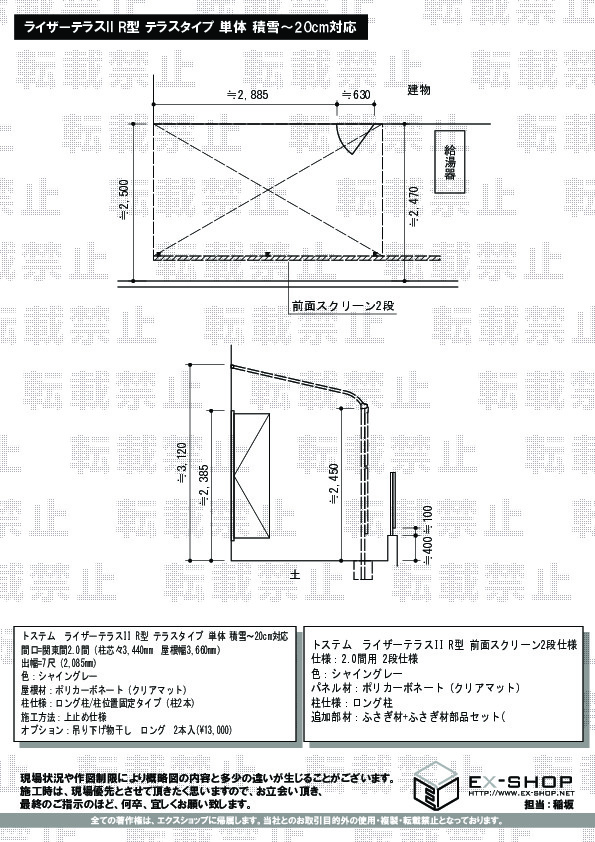 | サイズ | 屋根幅 3,660mm 出幅 2,085mm |