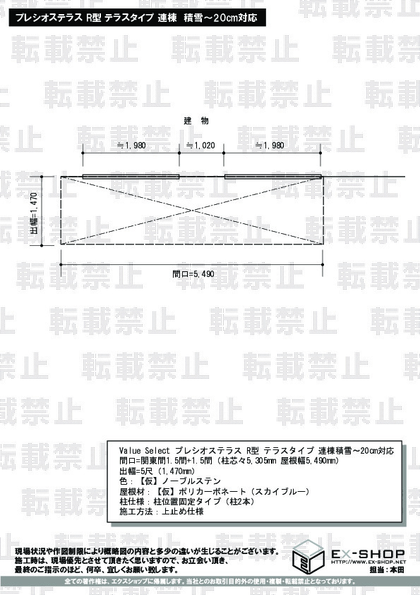 サイズ | 屋根幅 5,490mm 出幅 1,470mm |