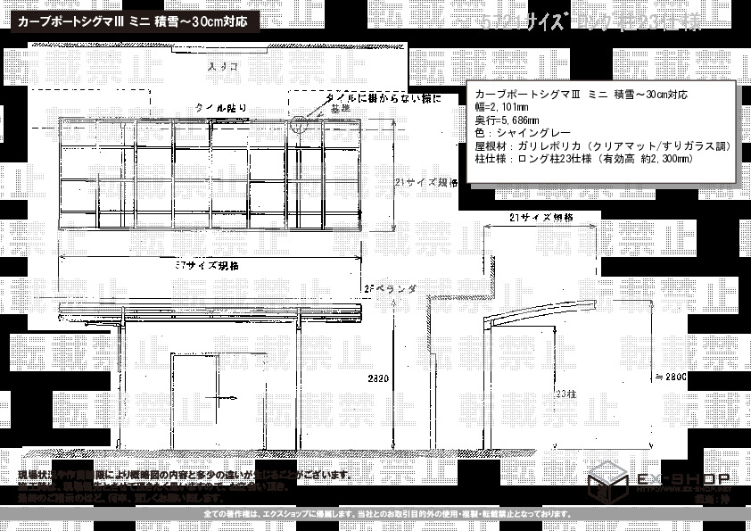 | 屋根高等 | ロング柱23仕様(有効高 約2,300mm) |