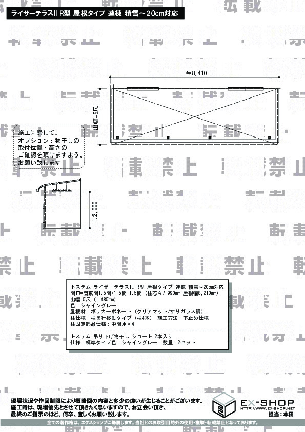 | サイズ | 屋根幅 8,210mm 出幅 1,485mm |