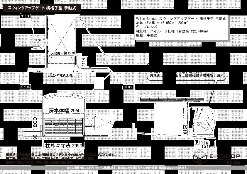 カラー:ブロンズ 規格幅:4180 (mm) 規格高:1150 (mm)