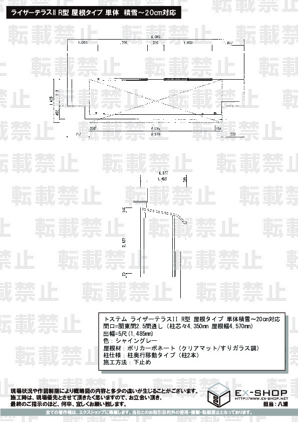 サイズ | 屋根幅 4,570mm 出幅 1,485mm |