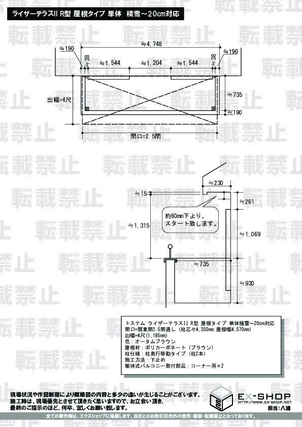 サイズ | 屋根幅 4,570mm 出幅 1,185mm |