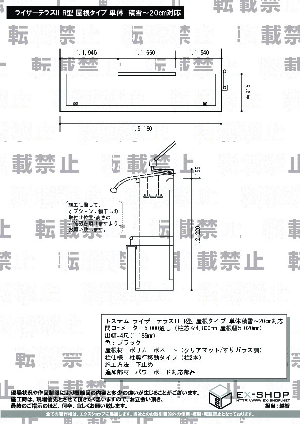サイズ | 屋根幅 5,020mm 出幅 1,185mm |