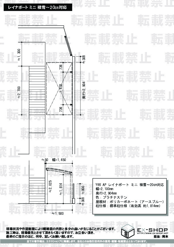 | 屋根高等 | 標準柱仕様(有効高 約1,814mm) |