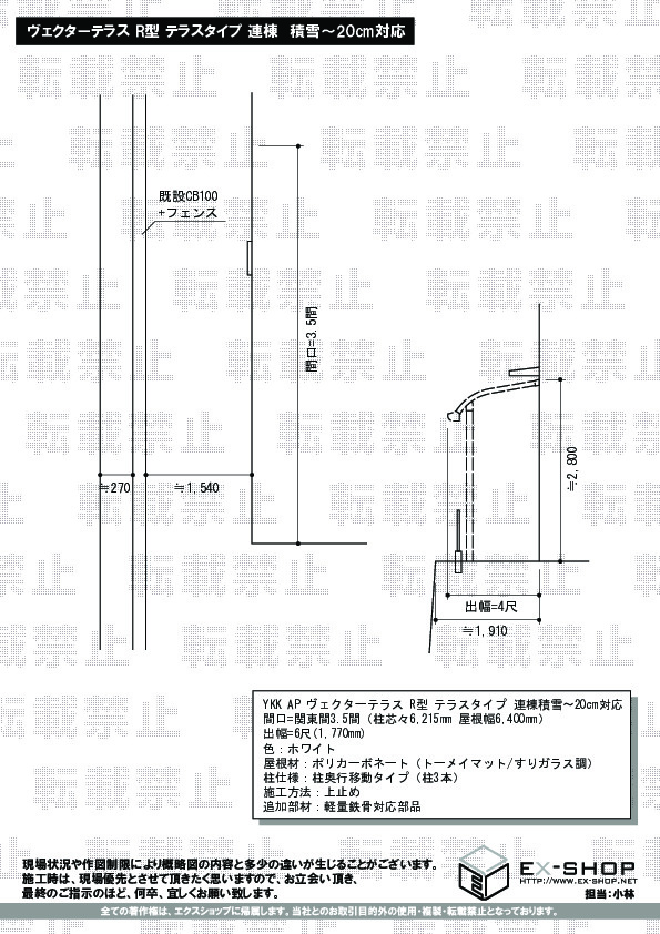 | サイズ | 屋根幅 6,400mm 出幅 1,770mm |