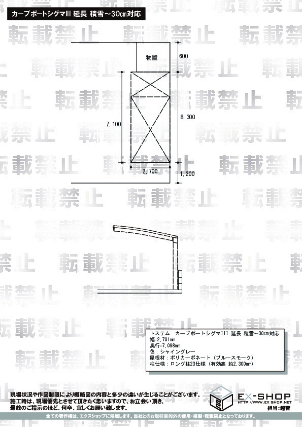 | 屋根高等 | ロング柱23仕様(有効高 約2,300mm) |