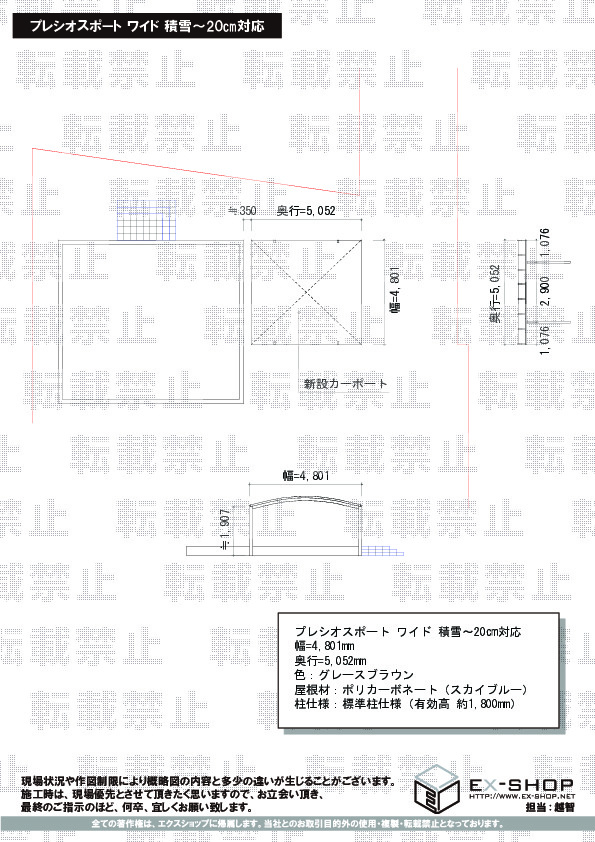 | 屋根材等 | ポリカーボネート(スカイブルー) |