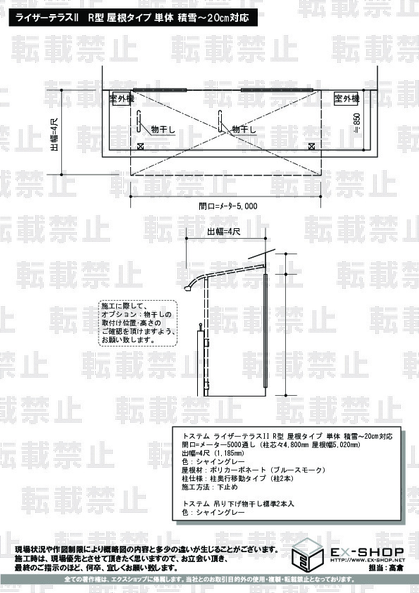 サイズ | 屋根幅 5,020mm 出幅 1,185mm |