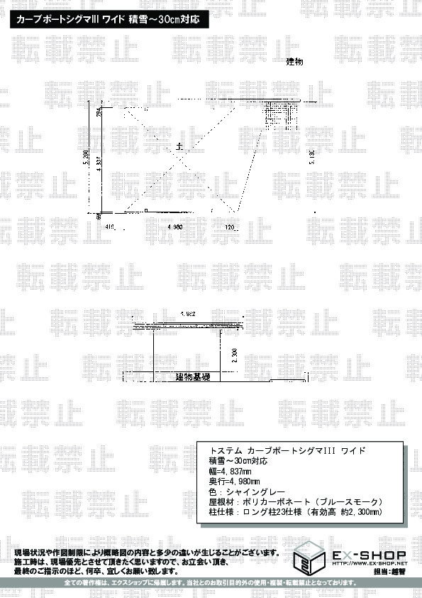 | 屋根高等 | ロング柱23仕様(有効高 約2,300mm) |