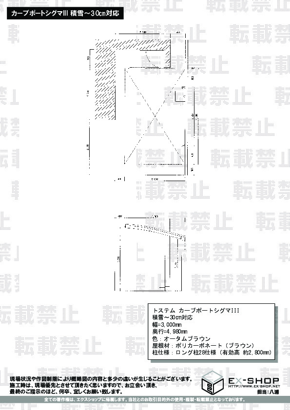 | 屋根高等 | ロング柱28仕様(有効高 約2,800mm) |