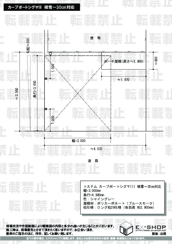 | 屋根高等 | ロング柱28仕様(有効高 約2,800mm) |