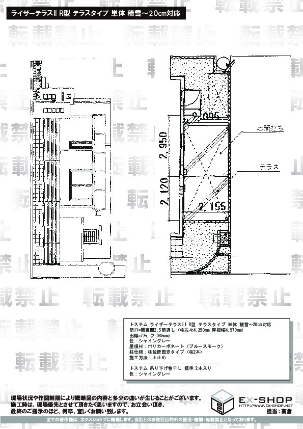サイズ | 屋根幅 4,570mm 出幅 2,085mm |