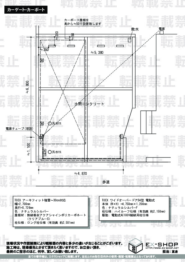 TOEX ワイドオーバードアR1型 ハイルーフ電動タイプ 5400x1000