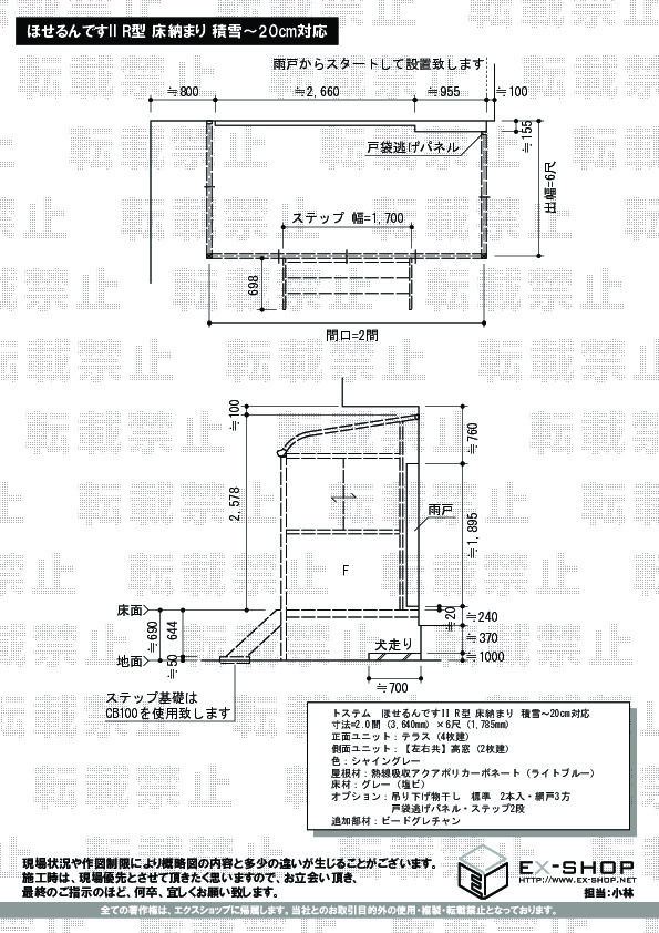 | サイズ | 間口 3,640mm 出幅 1,785mm |