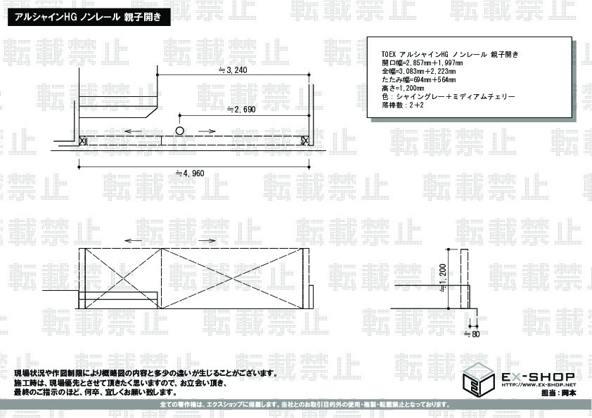 カラー:ブロンズ 規格幅:4180 (mm) 規格高:1150 (mm)