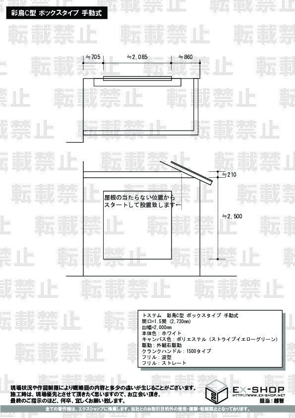 | サイズ | 間口 2,730mm 出幅 2,000mm |