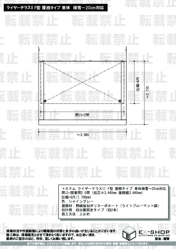 | サイズ | 屋根幅 3,660mm 出幅 1,785mm |