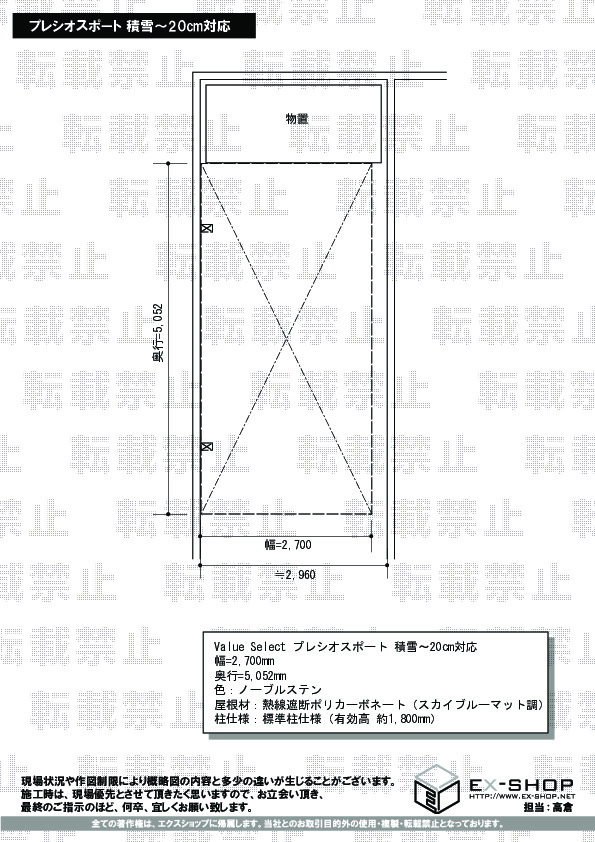 | 屋根高等 | 標準柱仕様(有効高 約1,800mm) |