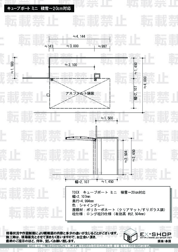 この度は『地域密着あんしん施工』をご利用頂き、有り難うございました。施工士にとりましても、このようなお褒めのお言葉を頂くのが、何よりの励みとなっております。ポリカーボネート(クリアマット/すりガラス調)の屋根材のキューブポートミニは、とても爽やか仕上がりでございますね。また機会がございましたら、是非エクスショップをご利用頂くよう、宜しくお願い致します。