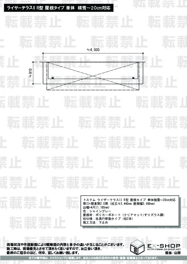 サイズ | 屋根幅 3,660mm 出幅 1,185mm |