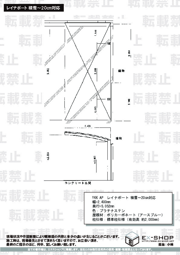 屋根高等 | 標準柱仕様(有効高 約2,000mm) |