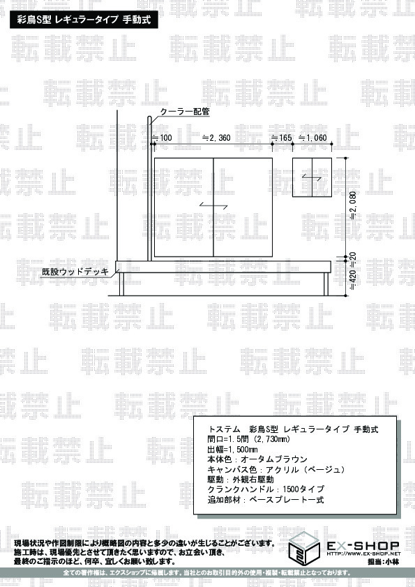 | サイズ | 間口 2,730mm 出幅 2,000mm |