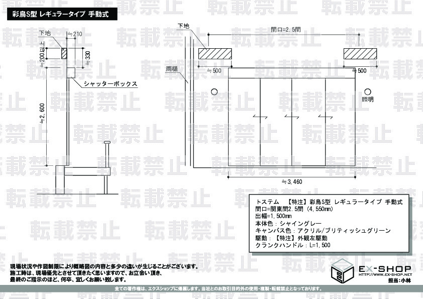| サイズ | 間口 4,550mm 出幅 1,500mm |