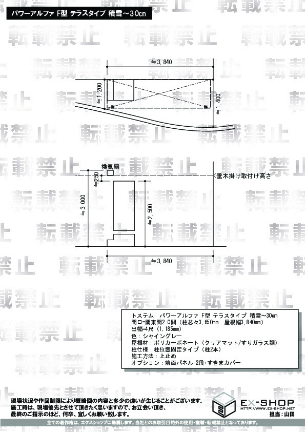 | サイズ | 屋根幅 3,840mm 出幅 1,185mm |