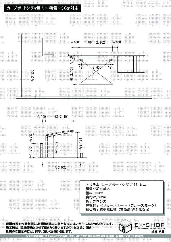 | 屋根材等 | ポリカーボネート(ブルースモーク) |