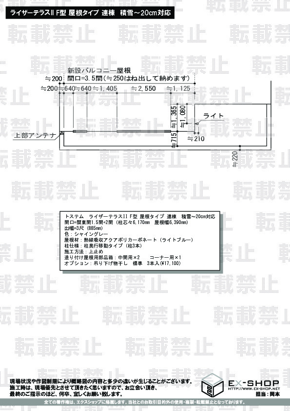 サイズ | 屋根幅 6,390mm 出幅 885mm |