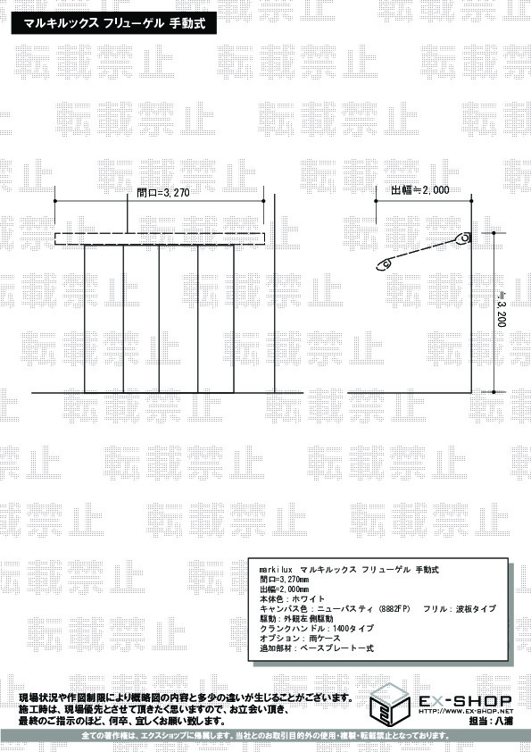 | サイズ | 間口 3,270mm 出幅 2,000mm |