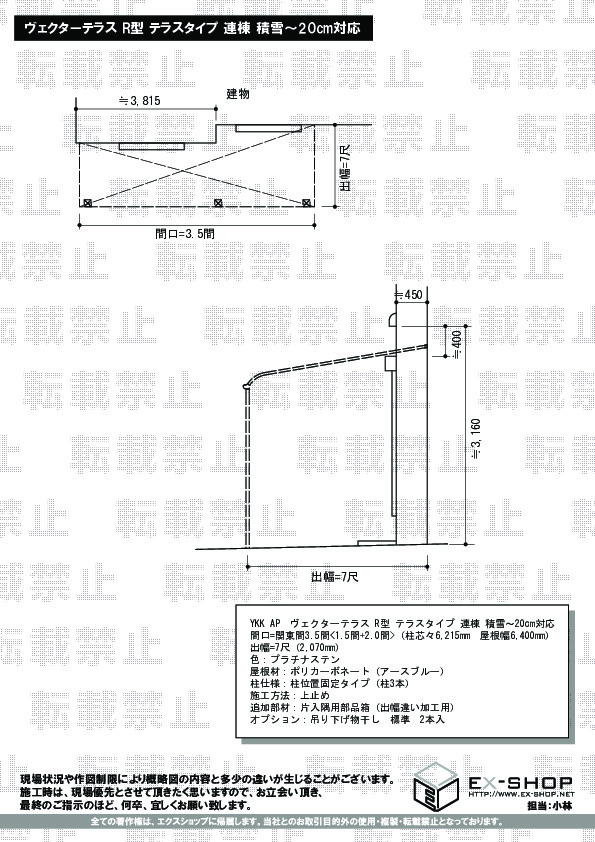 サイズ | 屋根幅 6,400mm 出幅 2,070mm |