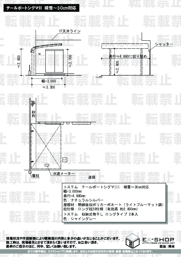 | 屋根高等 | ロング柱28仕様(有効高 約2,800mm) |