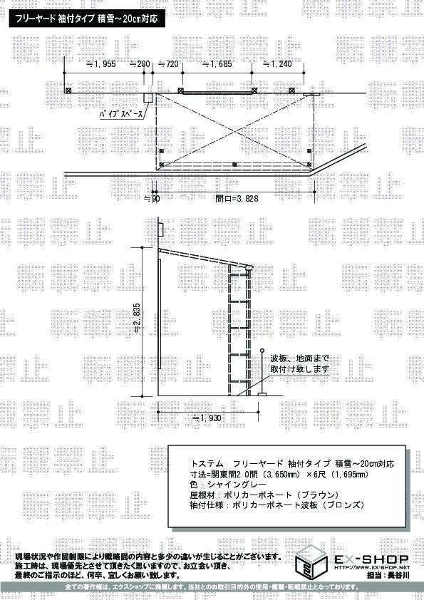 | サイズ | 間口 3,650mm 出幅 1,695mm |