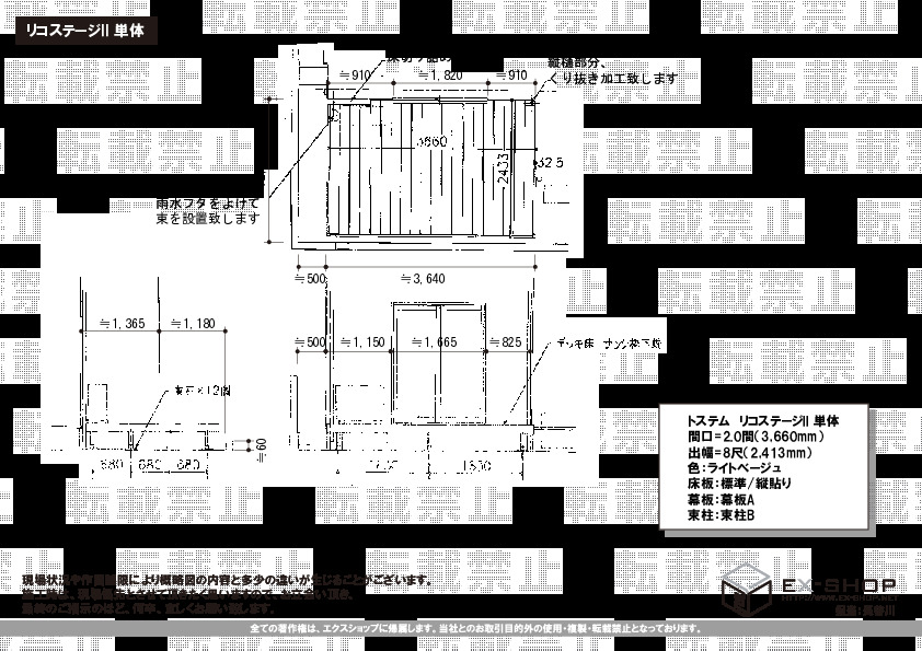 この度はリコステージII 単体の施工をご依頼頂き、誠に有難うございます。ライトベージュの温かいお色が、とても素敵でございますね。広々としたウッドデッキが、ご家族の憩いの場となりますことを心より願っております。今後も益々精進して参りますので、また機会がございましたら、是非エクスショップにご用命下さいますよう、宜しくお願い致します。